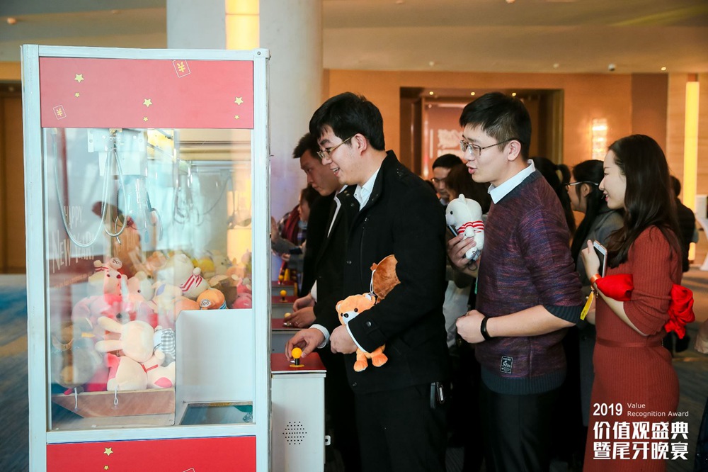 在樂(lè)隊(duì)動(dòng)感的旋律中,休閑區(qū)人潮匯成一片歡樂(lè)的海洋。掛滿紅包的發(fā)財(cái)樹(shù)年味十足,滿是可愛(ài)公仔的娃娃機(jī)前依舊火爆,小游戲如火如荼的進(jìn)行著。